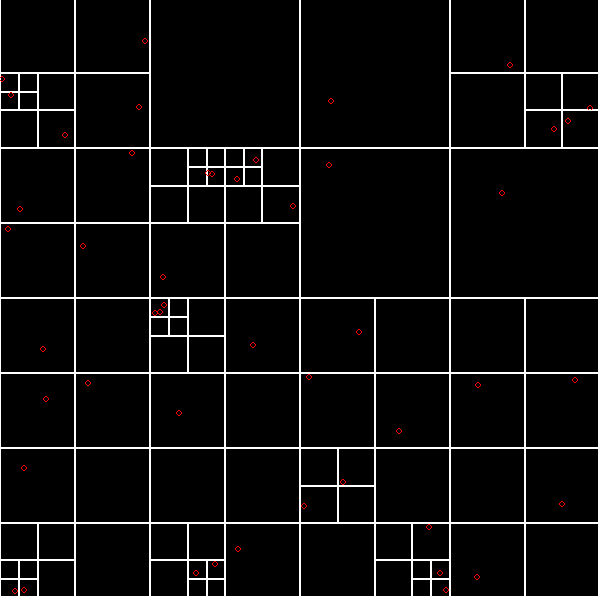 Ce code permet de construire un quadtree en fonction d'un nombre d'objets configurable.